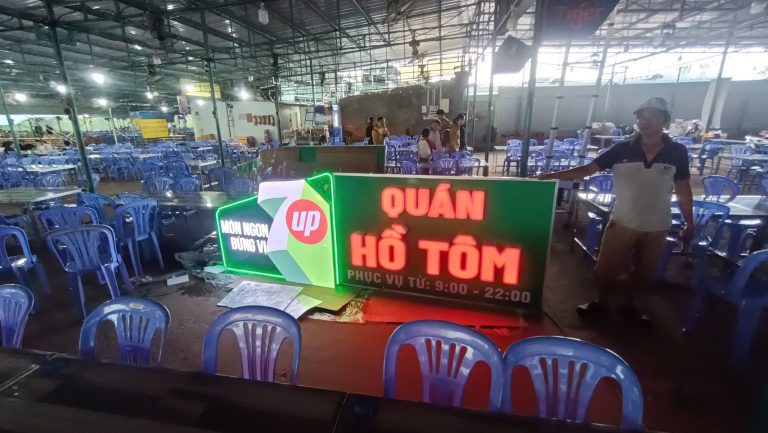 Hình ảnh thi công bảng hiệu led quán Bò Tơ Năm Sánh